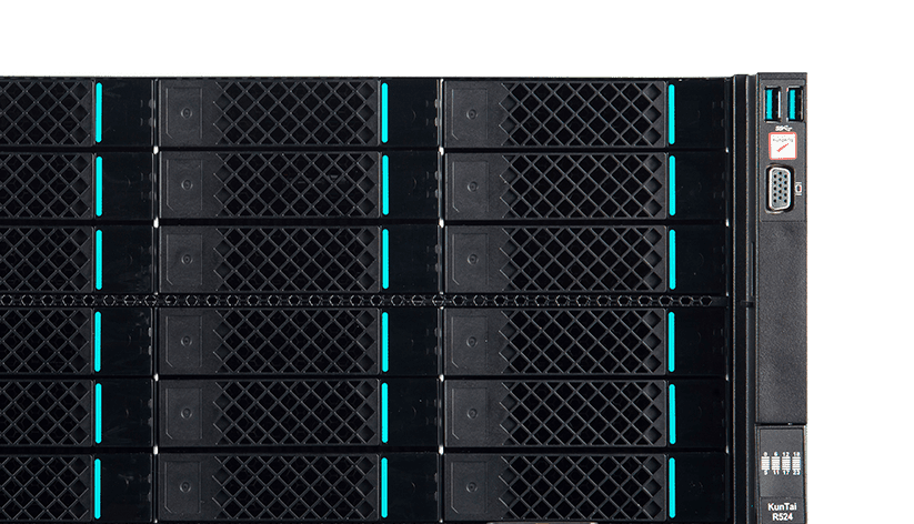 KunTai R524 存储型服务器是988PAY钱包数码基于鲲鹏处理器推出的新一代 ARM数据中心服务器。。。主要面向存储业务,,,,具有海量存储、、、、高性能、、、、低功耗以及易扩展的特点,,适合为大数据分析、、、、软件定义存 储等应用场景的工作负载进行髙效加速。。